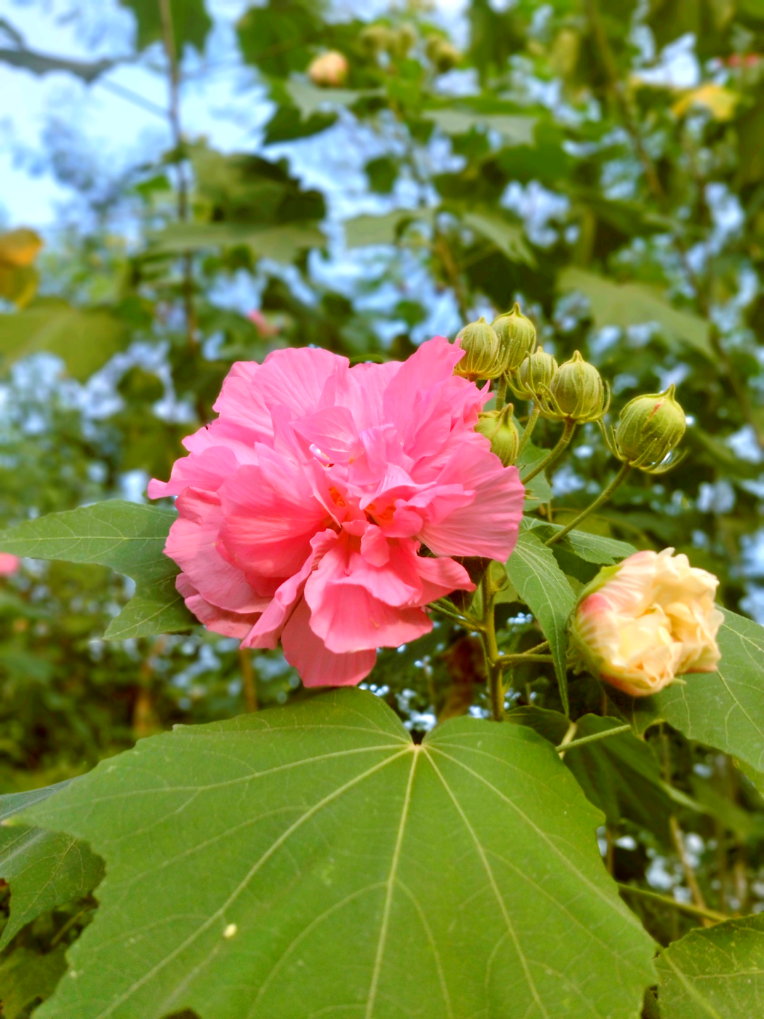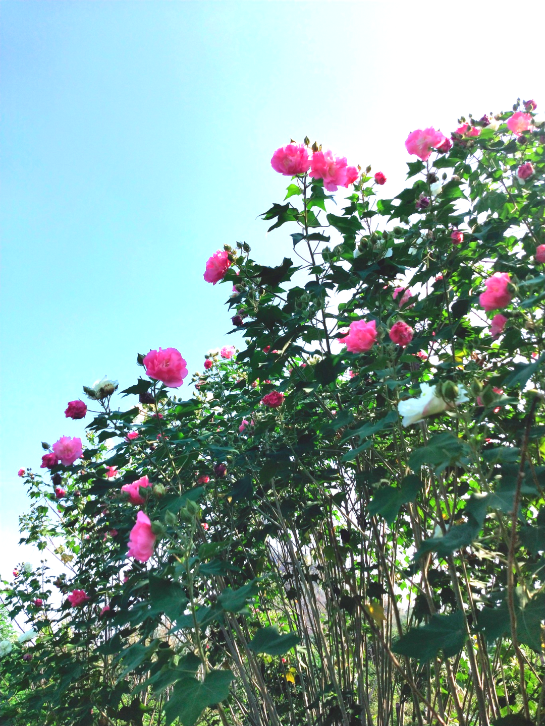 而马坝人遗址公园的芙蓉花,是开在时光里的雅致。绵延的花枝顺着步道铺展成花毯,将 13 万年前 “马坝人” 的栖息之地,晕染出温柔的色彩。